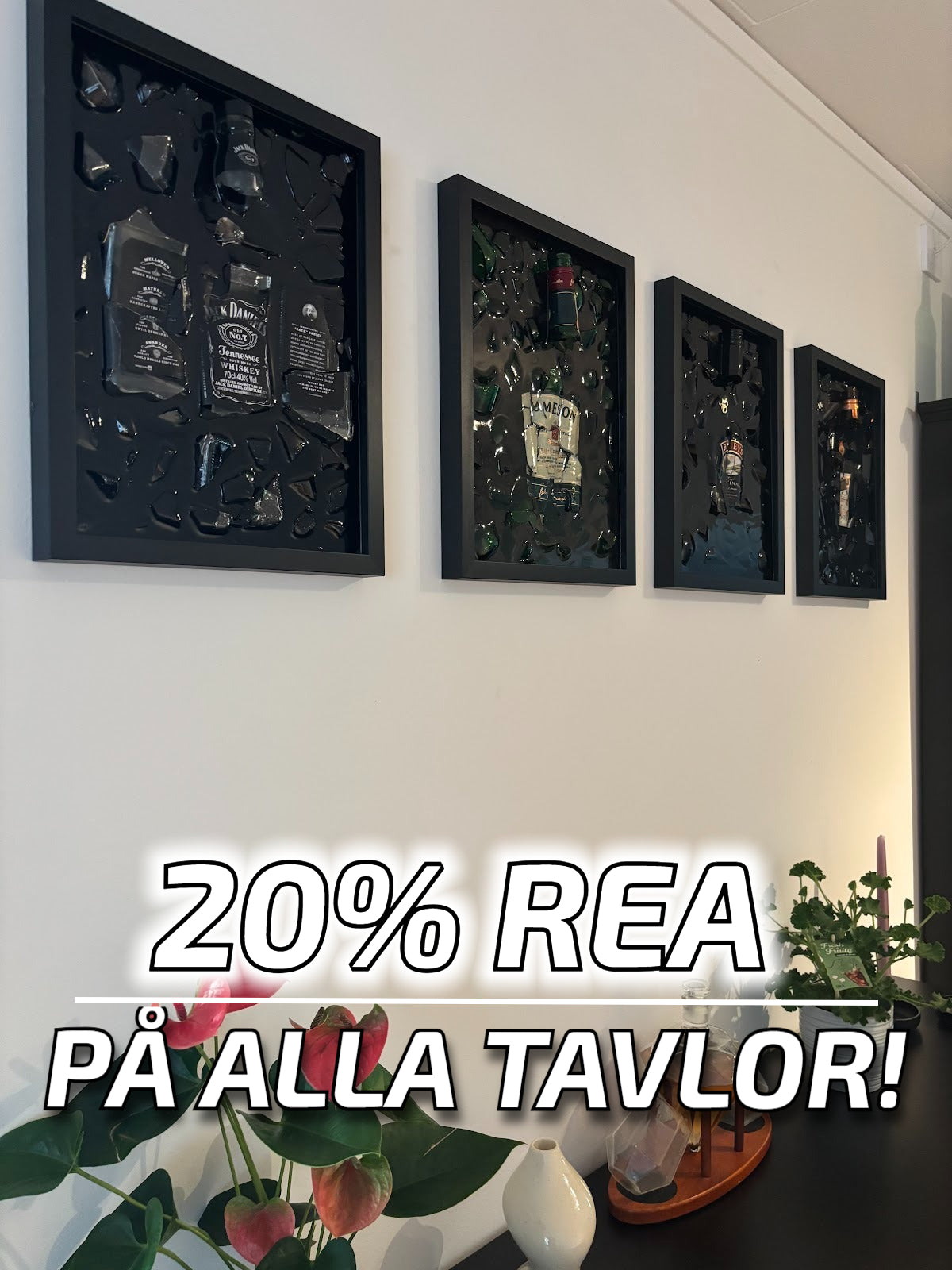 Handgjorda tavlor av riktiga flaskor. Perfekt för baren, mancaven, rummet eller som den perfekta presenten. Smash Frames har 1000+ sålda tavlor. Och varenda tavla har en egen unik design.